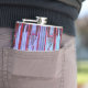 Die Pfeifen der Rieger-Orgel im Rathaus der Christchurch, Neuseeland, reflektieren die blaue Beleuchtung von den Punkten auf der Bühne unten, die im Gegensatz zum roten Holz des Orgelgehäuses steht. Auf dieser Flasche machen sie das perfekte Geschenk für einen Musiker, vor allem einen Organisten.