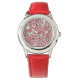 Kinderuhr aus Edelstahl mit rotem Lederarmband