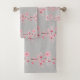 Kirschblüte Sakura Pink Floral Japanisches Grau Badhandtuch Set