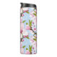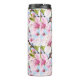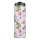 Ein thermischer Becher mit zarten Kirschblütenzweigen in sanften Pastelltönen vor einem ruhigen blauen Hintergrund, der einen eleganten, beruhigenden Touch für Getränke unterwegs bietet. Eine raffinierte, geschenkfertige Wahl für Naturliebhaber und Bewunderer von elegantem Blumendesign
