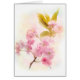 Frühlings-Kirschblüten-Blumen auf einer strukturierten Kunsthintergrund-Grußkarte, links freier Raum für Ihre eigene Mitteilung