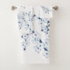 Klassischer blau-weißer Kirschblütenzweig auf weißem Hintergrund. Süßes botanisches Design in maritimen Farben für ihn und sie.