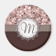 Ein eleganter Spalteentwurf mit einem Spitzenmusterbild der empfindlichen rosa Kirschblüten über einer festen malvenfarbenen lila Unterseite, mit einem strukturierten Band und einem kundengerechten Spitzemonogramm-Siegel in der Mitte.