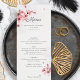 Dieses individuell gestaltete Hochzeitsmenü ist perfekt für ein stilvolles, romantisches und elegantes Hochzeitsessen geeignet, das sich mit unserer Kollektion "Pink Cherry Blossom Wedding" abstimmt. Mit einer zeitgenössischen Abbildung der Zweige der rosa Aquarellkirsche mit Blume und Blüten ist dieses Menü leicht anpassbar, um die Namen der Braut und des Bräutigam, das Hochzeitdatum und die Menüoptionen in einem modernen und klassisch dunkelgrauen Schriftart (es enthält auch eine Zeile für besondere Ernährungsbedürfnisse - löschen Sie einfach den Vorlagentext, falls Sie ihn nicht benötigen) einzubinden. Die Kartenrückseite ist mit dem Namen der Ehegatten und dem Hochzeitstermin anpassbar, ergänzt durch eine exquisite botanische Abbildung.