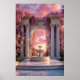 Verwandeln Sie Ihren Raum in ein Heiligtum der Romantik und Serenität. Dieses atemberaubende Poster zeigt einen majestätischen Marmorbogen, der mit blühenden rosa Kirschblüten drapiert ist und sich zu einem strahlenden Sonnenuntergang öffnet, in dem ein eleganter Brunnen in perfekter Harmonie fließt.