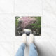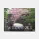 Dekorative und willkommene Eingangstüre, die das Foto von Rosa, Kirschblüten, die über einen Steinmauerweg und eine Brücke ziehen, zeigt. Ein schönes, blumengeschmücktes Design! Nutzen Sie Indoor oder in überdachten Einstiegsbereichen. Wählen Sie Ihre Türgröße aus.