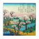 Ein kleines Dorf mit niedrigen Gebäude in der Nähe der Koganei-Brücke. Die Kanalufer sind von blühenden Kirschbäumen gesäumt. Der Fuji flüchtige Blick unter den Kirschblüten. Eine Seite der Serie, Edo Kinko Hakkei no Uchi (Acht Ansichten in den Umgebungen von Edo). Aus dem 19. Jahrhundert (1838) Holzschnitt, Koganeibashi no Sekisho (Abend Glow an der Koganei Bridge), von Ando Hiroshige. Alle Rechte vorbehalten © 2013 padre art