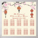 Ein Sitzplan mit rosa Kirschblüten und roten chinesischen Laternen mit Text in Cranberry rot.