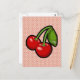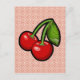 Hellrote Kirschen auf einem Hintergrund rosa Retromuster der Blume