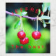 Kirschen auf dem Baum nach dem Regen mit einer Biene und mit Ihrem Namen und Text