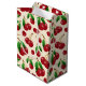 Niedliche Kirschmuster mittlere Geschenktasche mit gepaarten und Single Kirschen mit intakten Stielen und grünen Blätter, als ob sie nur aus dem Kirschbaum gepflückt - Elfenbeinhintergrund ist anpassbar - von katz_d_zynes