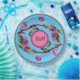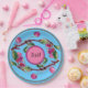 Kirschen Pink Frucht auf Türkis mit Initials Pap Pappteller