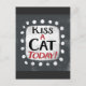 "Kiss A Cat Today" ist ein niedliches Textdesign mit einer weißen Akzent-Form, umgeben von niedlichen weißen Polka-Punkten.