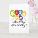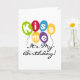 Farbenfrohe Ballons und schwarzer Text Geburtstagsdesign mit dem Titel "Kiss Me It's My Birthday!" auf Geburtstagskarten, Tasse, T - Shirt und anderen Geburtstagskleider und Geschenkartikeln.
