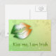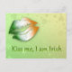 St. Patrick´s Day Illustration: Lippen in der Farbe der irischen Nationalflagge - grün, weiß, orange - auf einem hellen Hintergrund mit Kleeblättern und dem Text "Kiss me, I am Irish".