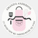 Niedliche Pink-Polka-Punkt-Schürze mit Küchenwerkzeugen, einzigartiger Rundadressen-Aufkleber.