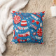 Dieses Produkt ist ein dekoratives Polster, das das Thema des Arbeitstages widerspiegelt. Das Muster des Kissens basiert auf einem blauen Hintergrund, und verschiedene Symbole, die rot und weiß einsetzen, werden harmonisch wiederholt angeordnet.