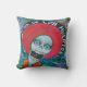 Dieser Tag der toten Malerei wird in den Farben, mit Farben von Lila, von Gelbem, von rosa, von Blauem, von Grünem, von Braunem und Rot überlagert, um diesen mexikanischen Feiertag zu feiern. Handgemaltes folkart mit Rosen und einer Gitarre, im Jahre 2012 hergestellt. Kissen Dia De Los Muertos American MoJo