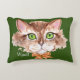 Kissen für ein Babyzimmer mit einer grünen mit Augen Wasserfarbe Katze und einem orangefarbenen Bogen auf einem Jägergrünen Hintergrund. Der Name auf dem Kissen kann geändert werden. Dank Creative Fabrica für einige der Elemente in der Gestaltung.