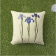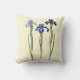 Drei elegante Stämme botanisch illustrierte lila Iris der Front und der Rückseite eines sahnigen hellgelben quadratischen Grades eine Baumwolle betonen Kissen.