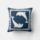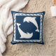 Pillow mit weißen Delphinen und Wellen auf blauem Hintergrund. Sehen Sie alle koordinierenkissenentwürfe an den Sandy-Fuß-Studios.
