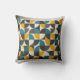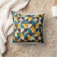 Ein stilvolles Kissen mit einem auffälligen geometrischen Muster im Stil der Mitte des Jahrhunderts in einer schicken Farbpalette aus Türkis, Senfgelb und Anthrazitgrau. Fügt jedem Wohnraum eine zeitgenössische und künstlerische Note hinzu.