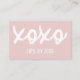 Elegante moderne Küsse, Lippenprodukt Händler Visitenkarte, mit Xoxo Lipstick Schrift. Weiche, neutrale Farbpalette.