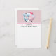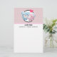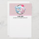 Personalisierte Schreibwaren mit einem niedlichen Cartoon von einem Bärenpaar, der Bär ist pastellrosa mit einem kleinen Bogen und küsst die Wange eines blauen Bären, der sehr erfreut aussieht. Ein kleines rosa Herz schwebt über ihren Köpfen. Sehr niedlich und Kawaii. Ein Muster mit einer gedämpften rosa Farbe mit weißen Polka Punkten entlang der oberen Grenze.