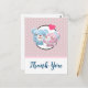 Party danke Ihnen Postcard mit einem niedlichen Cartoon-Bild eines Bärenpaar, der Bär ist pastellrosa mit einem kleinen Bogen und küsst die Wange eines blauen Bären, der sehr erfreut aussieht. Ein kleines rosa Herz schwebt über ihren Köpfen. Sehr niedlich und Kawaii. Das Hintergrundmuster ist eine gedämpfte rosa Farbe mit weißen Polka-Punkten. Personalisierte Meldung auf der Rückseite.