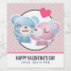 Personalisierte Weine. Sie ist mit einem niedlichen Cartoon-Bild eines Bärenpaares entworfen und ist pastellrosa mit einem kleinen Bogen und küsst die Wange eines blauen Bären, der sehr erfreut aussieht. Ein kleines rosa Herz schwebt über ihren Köpfen. Sehr niedlich und Kawaii. Das Hintergrundmuster ist eine gedämpfte rosa Farbe mit weißen Polka-Punkten.
