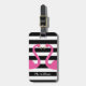Dieses tropische Gepäckanhänger ist mit einem fuchsienküssen Flamingos auf schwarz-weiß gestreiften Hintergrund geschmückt und personalisiert mit dem neuen Nachnamen, auf der Vorderseite, und all Ihren persönlichen Informationen auf der Rückseite, was es perfekt für ihre Flitterwochen macht.