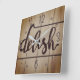 Kitchen Graphics Word DELISH Rustic Brown Quadratische Wanduhr