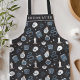 Eine herrlich schicke Halloween-Schürze für Ihre freundliche Nachbarsküche mit Schlangen, mystischen Kristallen, Tränken, Zauberbüchern, Kerzen, Gläsern, Schädeln, Tarot-Karten und Tränen auf kohlebeständigem Hintergrund. "Kitchen Witch" oder Ihre Wahl der Personalisierung erscheint oben.