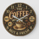 hot and fresh ,coffee ,cup, bean, café, rustic , wall clock, cozy , decor, barista, style clock, fresh brew wall clock