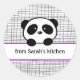 Trendige und hübsche Küchenkonservenaufkleber mit schwarz-weißem Panda-Design mit lila Details. Personalisieren Sie diese Etiketten mit Ihrem Namen für einen niedlichen Look auf gebackene und konservierte Waren.