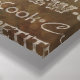 Eine Silhouette eines Löffels in einem antiken Look mit Kochwörtern, verschiedenen Schriftart und einem "Steinhintergrund".