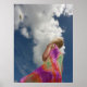 Kleines Mädchen fliegt ihren ersten Drachen an einem schönen sonnigen Tag am Strand.