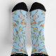 Icons in Vintager Farbpalette. Nahtloses Muster. Benutzerdefinierte Hintergrundfarbe. Benutzerdefinierte Farbe des oberen Streifens. Benutzerdefinierter Text auf jeder Socke.