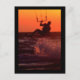 Kitesurfer, der bei Sonnenuntergang in den Wellen Aerials macht