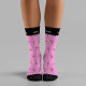 Personalisierte, neuartige Socken aus Kirschkuchen, die mit handgezeichneten Aquarellkirschen auf einem lebhaften rosa Hintergrund hergestellt wurden. Mehr lustige Fruchtmuster Produkte gibt es in meinem Geschäft. Originalkunst von Leslie Larson,