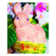 Kleine Kaninchenstatue mit afrikanischen Veilchen im Hintergrund. Dekoratives Osterhasen. Kitsch Art and Design. Die Dekoration ist kalt und sehr gefühlvoll. Klassische Filmfotografie von Minolta Vintag 35mm Kamera. Perfektes Geschenk für Kaninchendekorationsliebhaber.
