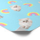 Kitschy Pastel Aesthetic Cat Kitten Rainbows Blue Poster