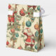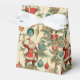 This whimsical Santa favor box exudes a playful nostalgia, transporting you to a bygone era of holiday cheer. The background is a warm, creamy beige reminiscent of vintage parchment, allowing the vibrant illustrations to pop with festive merriment.