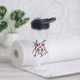 A white and red kitsune fox mask atop the kanji character for "kitsune."