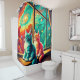 Dieser niedliche Duschvorhang hat zwei kleine Kätzchen, die die Galaxie aus dem Fenster sehen.