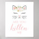 Kitten Birthday Sign Floral kitty Gesicht Poster