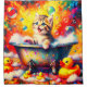 Fügen Sie Ihrem Bad eine Touch verspielten Charmes mit unserem Duschvorhang "Kitten Bubble Bath" hinzu. Dieses hübsche Design besticht durch ein niedliches Kätzchen, das in einer Vintagen Klauenbadewanne sitzt und sich in Richtung schwebender Seifenblasen bewegt. Die Badewanne ist mit lebendigen Farbspritzen und vier Gummisauern umgeben, was eine skurrile und lebendige Szene schafft. Dieser Duschvorhang ist perfekt für Kinder und Tierfreunde geeignet und sorgt für ein angenehmes und unvergessliches Erlebnis für alle Altersgruppen.