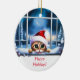 Ein niedliches Urlaubskornament einer Katze, die durch ein Fenster mit Weihnachtsmannmütze und Halbmond schaut. Sie können den Wortlaut auf dem Ornament oder dem Schriftart ändern. Ein lustiges Weihnachts- oder Weihnachtsdekor und macht ein niedliches Geschenk für jeden.