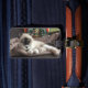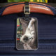 Dieses Acryl-Identitätsschild für Gepäck, Packstück oder auch Handtasche zeigt ein hübsches, auf einer Seite liegendes Kätzchen und eine Vorlage für Ihre Vitalinformationen auf der anderen Seite. Foto ©Patricia AZ Phillips.