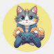 Kitten Holding Game Controller Smiling Gamer Cat Runder Aufkleber